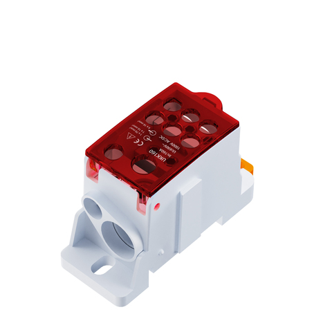 Een-In En Zes-Uit Waterdichte Stroomverdeelkast Aansluitblok Din Rail Enkele Fase Aansluitdoos (Rood) Ukk80a